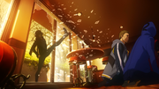 Later, during the CCG's raid on the Aogiri base, he was beside the Bin brothers, contesting the ghoul investigators.[viii]
